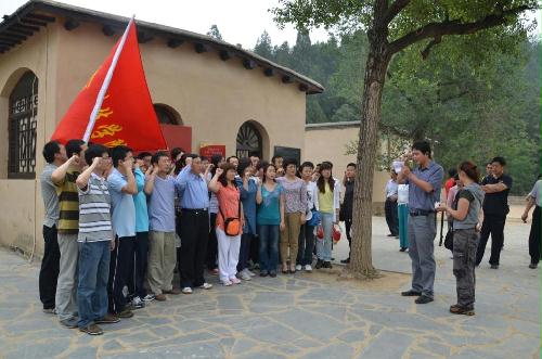 大家怀着崇敬的心情先后参观了中共中央旧址、七届二中全会旧址及毛泽东、朱德、周恩来、刘少奇、任弼时等老一辈革命家的故居。一张张珍贵的照片和手稿让大家深刻感受到党在西柏坡这片红色土地上的光辉革命历程。在七届二中全会旧址前,全体党员面向党旗庄严宣誓,表达了对党的忠诚和为防灾减灾教育事业发展而奋斗的决心。