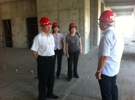 (修局长视察正在建设的实验楼)
