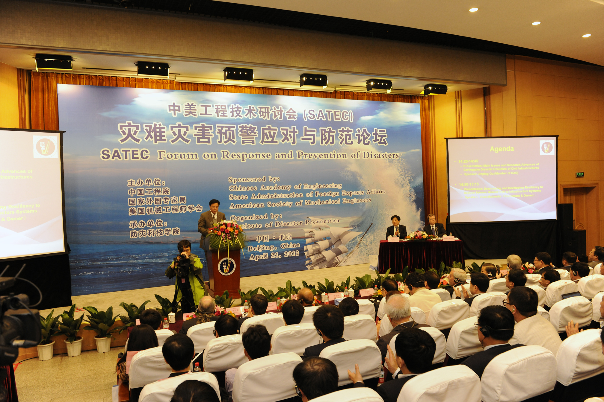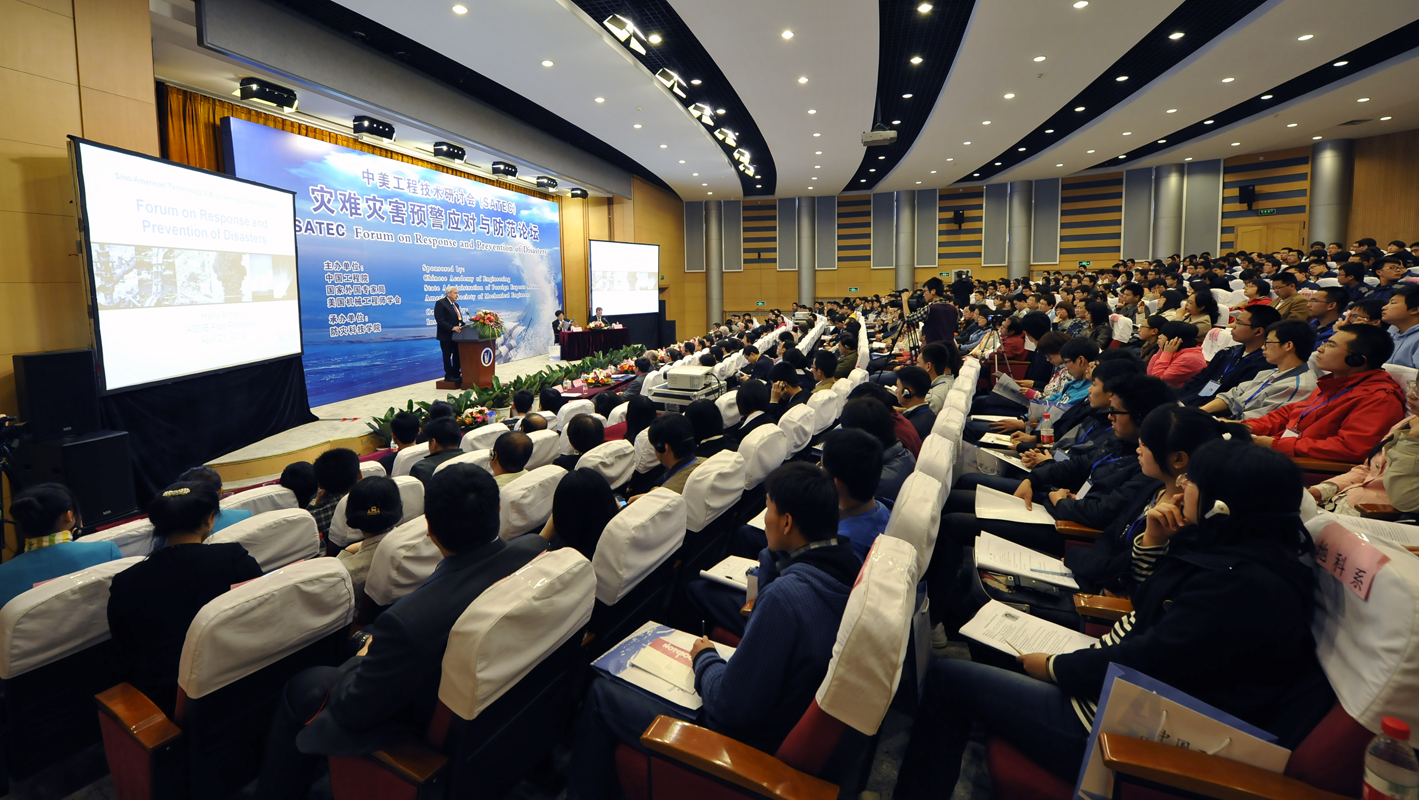 第九届中美工程技术研讨会“灾难灾害预警应对与防范论坛”于4月21日在防灾科技学院成功举办。本次论坛由中国工程院、国家外国专家局、美国机械工程师学会(ASME)联合主办,防灾科技学院承办。中国国际人才交流中心主任刘永志、美国机械工程学会前理事长Harry Armen、中国工程院国际合作局副局长郑晓光、防灾科技学院领导班子等50余位嘉宾出席论坛,学院300余名师生参加论坛。论坛由中国工程院院士谢礼立、ASME全球合作总监Michael Michaud主持。