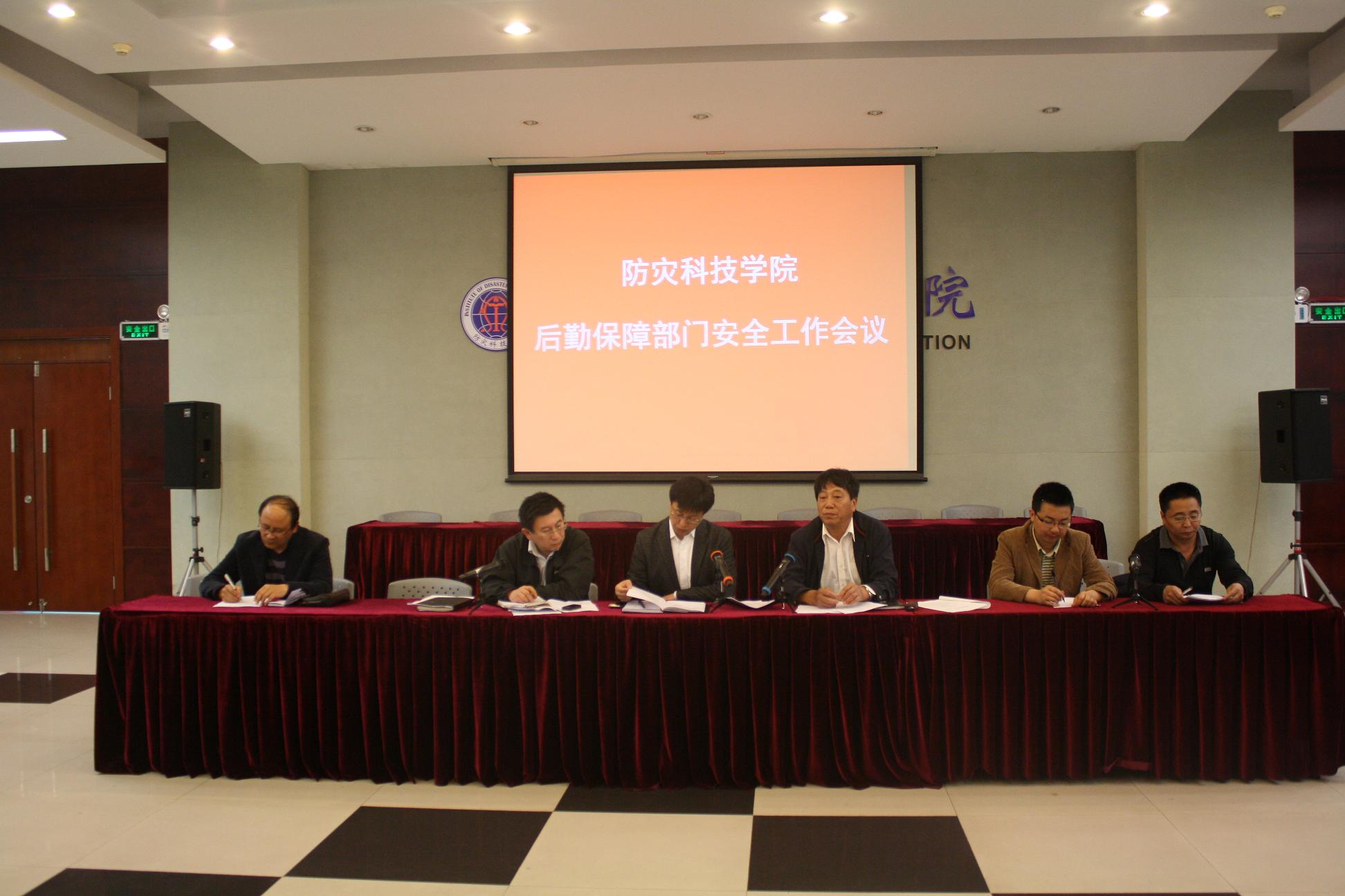会议传达了《河北省教育厅关于转发河北省构筑社会消防安全防火墙工程实施意见的通知》(冀教政体〔2010〕41号)和《燕郊高新区安全生产委员会关于开展安全生产大检查行动的通知》(燕安〔2012〕10号)等文件精神,通报了4月8日食堂生产安全事故情况和4月22日供电安全事故的初步调查情况,部署了后勤保障部门安全大检查任务。