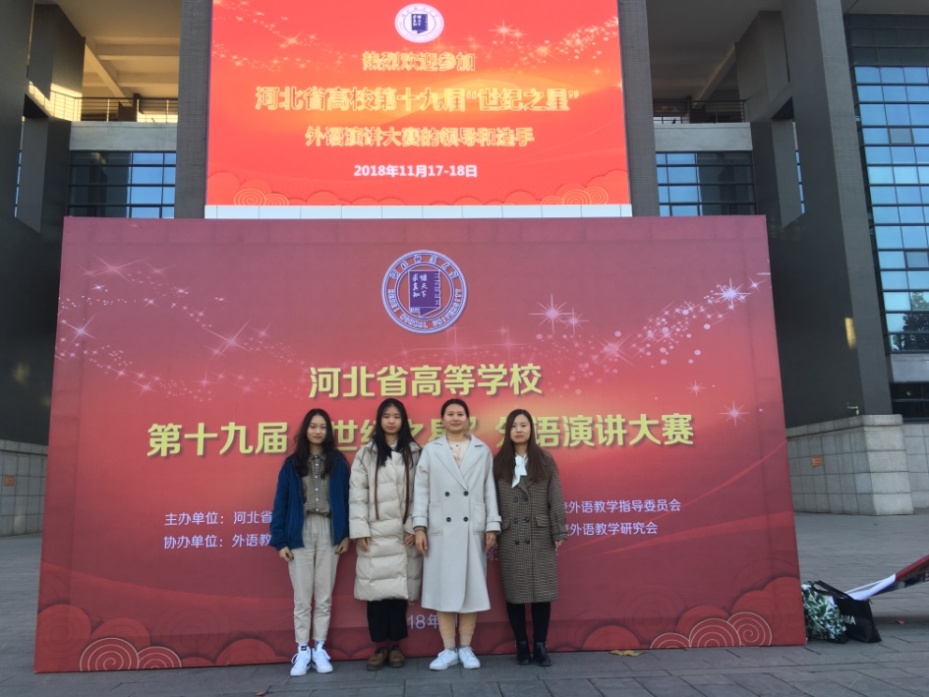 近日,我校师生在2018年河北省高校“世纪之星”外语演讲大赛中获奖。我校外国语学院教师朱洁获得青年教师组一等奖,学生聂亚腾、魏诗婷获得专业组三等奖,学生罗茜雯、赵雅慧获得非专业组三等奖。我校外国语学院获大赛组织奖。
