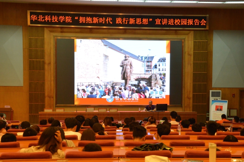6月14日下午,廊坊市委党的十九大精神校园宣讲团成员、我院思政部主任贾作璋教授到华北科技学院做题为《中国特色社会主义进入新时代的伟大意义》的报告。华北科技学院各学院师生、校青马班成员聆听了宣讲。