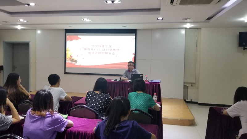 6月25日,学院举行廊坊市“拥抱新时代 践行新思想”宣讲进校园报告会。廊坊市委党的十九大精神校园宣讲团成员、华北科技学院王淑江教授做了题为《伟大实践产生伟大理论 伟大理论指导伟大实践》的报告;廊坊市委党的十九大精神校园宣讲团成员、我院黄萍教授做了题为《新时代中国共产党的历史使命》的报告,学院各系学生代表、青马班成员聆听了报告。