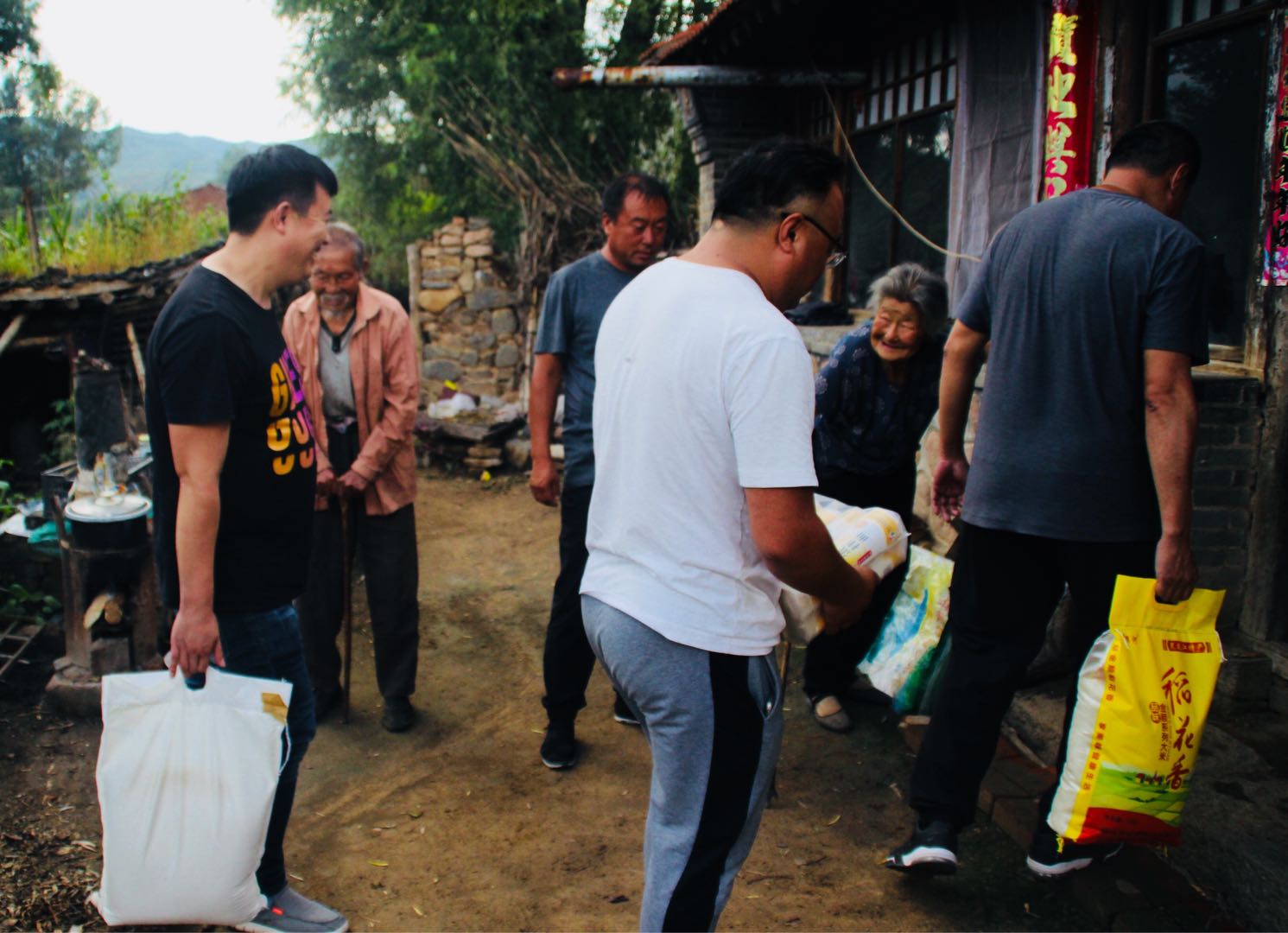 廊坊爱心人士给贫困户送米面油