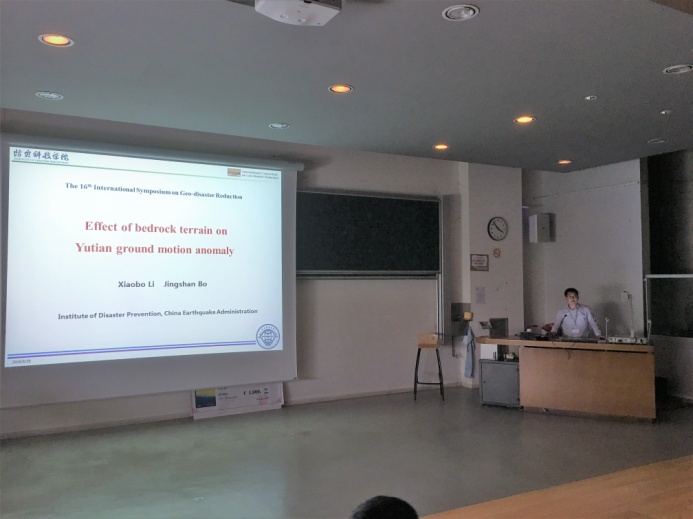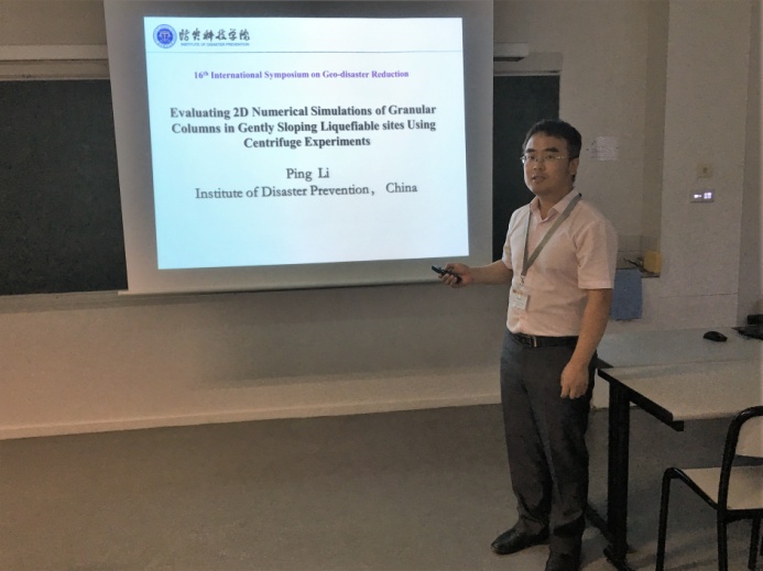 蔡晓光教授、李平副教授、李孝波博士分别以《Analysis of potential failure surface of reinforced soil-retaining wall under seismic loading》、《Evaluating 2D numerical simulations of granular columns in gently sloping liquefiable sites using centrifuge experiments》、《Effect of bedrock terrain on Yutian ground motion anomaly》为题在相关专题中进行学术报告,介绍了最新研究成果。