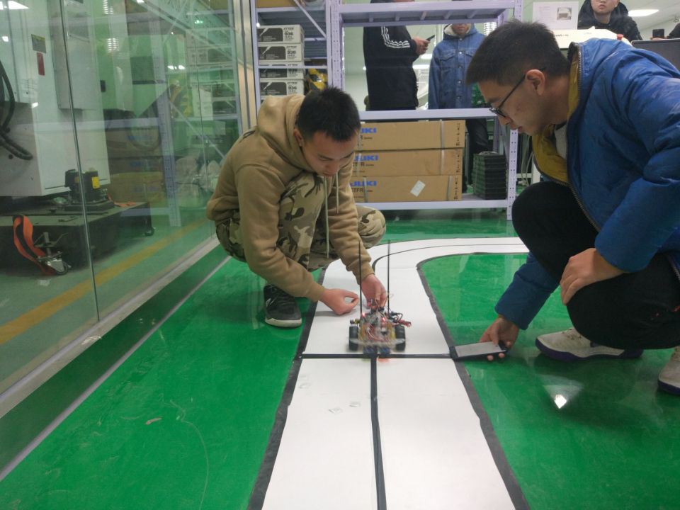 比赛分为两个项目,“智能寻迹组”“无碳组”。“智能寻迹组”的比赛内容是参赛者自行设计移动机器人按照规定赛道自主寻迹完成比赛,在此基础上所用时间最短者胜出。比赛中,综合考察了学生对于电路设计、传感器、程序设计和自动控制等课程的理解与实践能力。最终产生了一等奖1队、二等奖2队、三等奖4队。“无碳组”的比赛内容是产品中没有电源、线路板等元器件、所有动力来自于重力势能的转化,最终比拼的是产品各个环节的传动效率。根据比赛要求,产品所有零部件均为学生自行设计,加工与装配均在工程训练中心完成,让学生真正体验了设计、绘图、加工、装配、调试等不同的工程环节,有助于工程能力的培养。最终产生了一等奖1队、二等奖1队、三等奖2队。