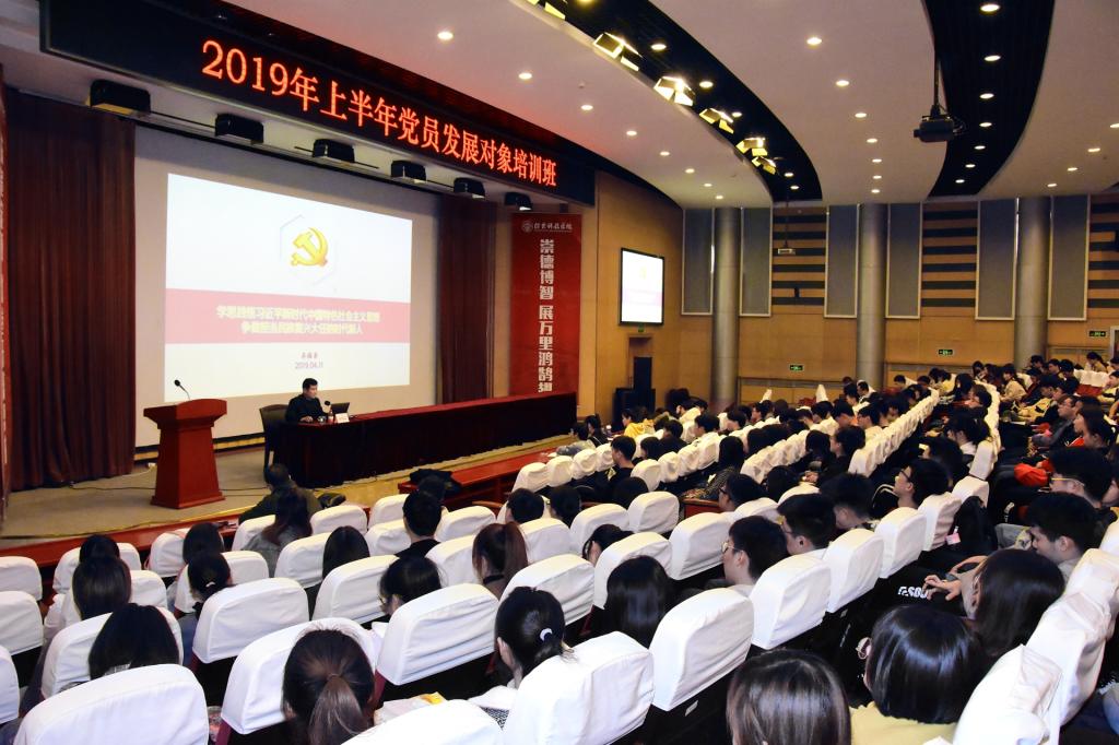 4月11日,学校党委书记齐福荣为2019年上半年党员发展对象讲主题为“学思践悟习近平新时代中国特色社会主义思想,争做担当民族复兴大任的时代新人”的党课。