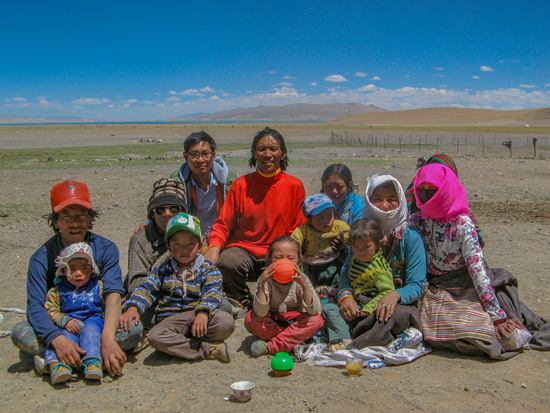 欧文东(后排左一)带领脱贫攻坚驻村工作队在西藏那曲尼玛县甲谷乡开展工作,与当地居民合影。