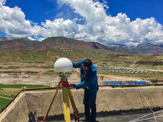 欧文东为“一带一路”GNSS项目进行勘选测试。本文图片由西藏自治区地震局提供