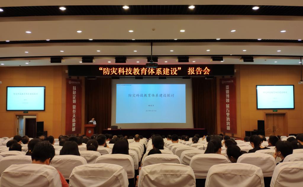 9月19日下午,校长姚运生在图书馆二楼报告厅为全体教师做“防灾科技教育体系建设探讨”专题报告会。