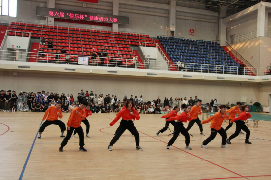 12月7日,防灾科技学院第六届“快乐杯”健康活力大赛在体育馆成功举办。健康活力大赛是防灾科技学院规模最大的舞蹈类比赛,是一场精彩的体育盛会、一次展示的盛会、一次锻炼的盛会,是同学们广泛喜爱、盛情参与的盛会。这次活力大赛共有10个代表团、30个代表队、300余人参赛,比赛共设三个比赛项目,分别是花球啦啦操、健身街舞和有氧舞蹈。其中新增加的啦啦操是一项新兴的具有独特魅力的体育运动,能充分展现运动员的青春活力和健康向上的团队合作精神。此次赛事的举办,不仅能为啦啦操运动的普及以及全民健身运动的开展起到积极促进的作用,而且为学校阳光体育运动的进一步开展提供了良好的契机,必将进一步推动我院啦啦操项目的广泛深入发展。