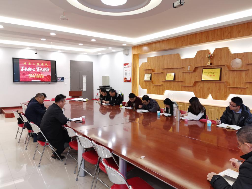 12月13日上午,地质工程学院党总支召开了“不忘初心、牢记使命”专题民主生活会,学校副校长任云生出席会议并指导点评,会议由地质工程学院院长、党总支副书记李巨文主持,学院领导班子成员和党总支委员、教工党员代表参加会议,学生党员代表列席会议。