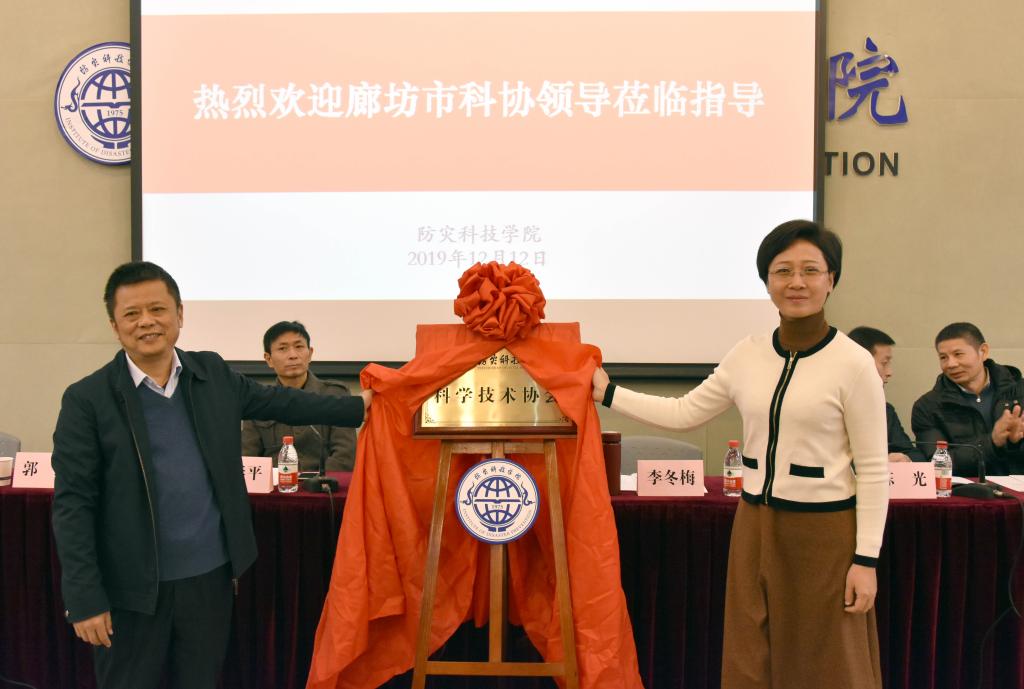 会上,廊坊市科协主席李冬梅与学校党委副书记、校长姚运生共同为“防灾科技学院科学技术协会”揭牌。