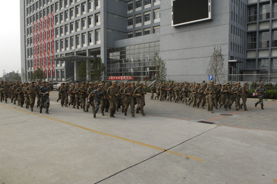 为了帮助2011级新生掌握应急避险的知识,提高应急避险能力,9月15日下午,防灾科技学院举行2011级新生地震应急疏散演练。本次演练由学院党委副书记、副院长宿景贵担任总指挥长,各相关部门领导、各系党总支书记及新生军训教官、指导员、大学生志愿者地震灾害紧急救援队、2011级全体新生参加演练活动。