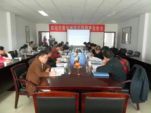 评审委员会主任由中国地震局工程力学研究所研究员袁一凡担任,成员包括河北省和石家庄市地震局、中国地震局有关研究所、北京震科工程监理有限责任公司、河北省工程地震勘察研究院的有关专家。评审委员会在听取项目技术负责人徐国栋副教授成果汇报的基础上,认真审阅了基础研究报告和总报告等相关技术报告,经过专家质询和项目组答辩,最终形成验收意见。评审委员会一致认为,该项目基础资料翔实,调查全面、系统、深入,完成了项目规定的各项任务,震害预测工作和《廊坊市活断层探测和地震危险性评价》项目其它专题紧密衔接,符合《地震灾害预测及其信息管理系统技术规范(GB/T19428-2003)》有关要求,达到了项目预定目标。