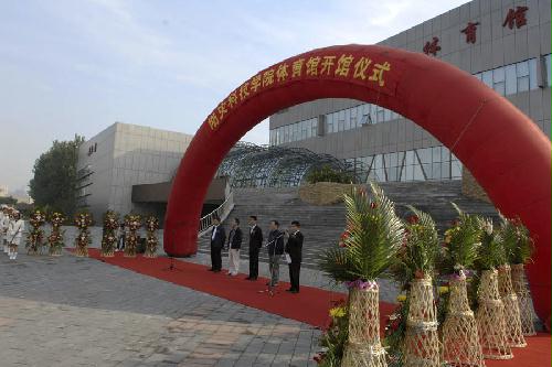 学院体育馆于2008年10月开工修建,2009年12月建成并试运行。体育馆设计新颖、造型优美,总建筑面积13000余平方米。馆内设施先进、功能齐全,主要功能分区包括:综合馆、游泳馆、训练馆、乒乓球室、武术与散打室、健美操室和健身体能训练室等。