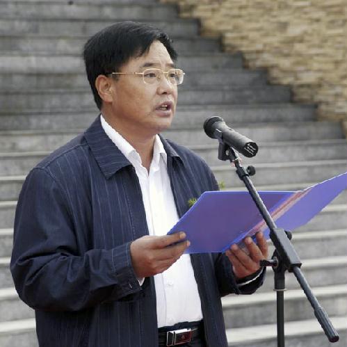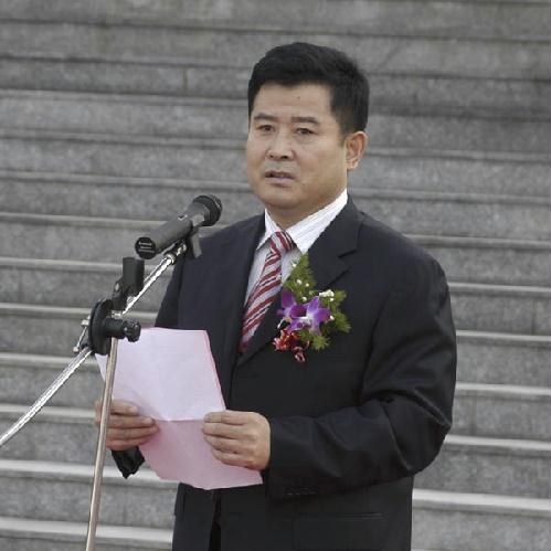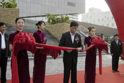 中国地震局党组书记、局长陈建民为体育馆开馆剪彩。