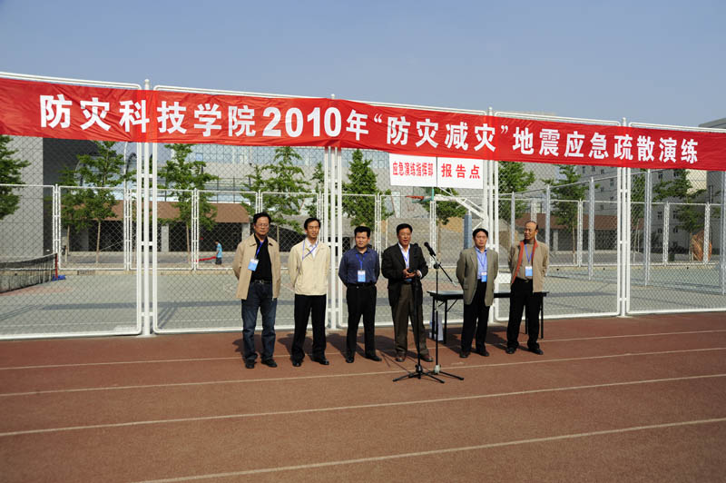 本次地震应急疏散演练区域为5号、6号教学楼,避险区设在体育场,学院领导齐福荣、薄景山、宿景贵、钟南才、迟宝明出席了本次演练活动,大学生志愿者地震灾害紧急救援队、2900余名学生和百余名教职员工参加了演练。