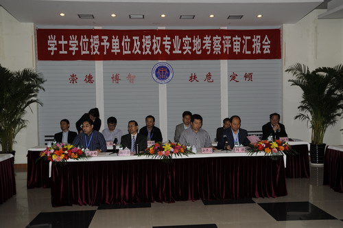 上午9时整,学院在图书馆多功能厅召开有学院领导、全体中层干部、评审专业教研室主任、2011年受评专业教研室主任参加的汇报会,中国地震局人事教育司副司长杨心平也出席了汇报会。会上,学院党委书记齐福荣教授首先代表学院致了热情洋溢的欢迎辞,杨心平代表中国地震局人事教育司作了重要讲话。随后,省政府学位委员会办公室副主任、本次评估工作联络员赵清云讲话并依次介绍评审组专家。接着,在评审组组长杨欢进教授主持下,院长薄景山教授首先代表学院向专家组做汇报。随后,本次申请学士学位授予权专业所在系的系主任高尔根教授、李巨文教授、丰继林教授、王慧彦教授分别向专家组做了汇报。汇报结束后,专家组成员还和与会同志一起观看了题为《追求卓越——前进中的防灾科技学院》的专题片。
