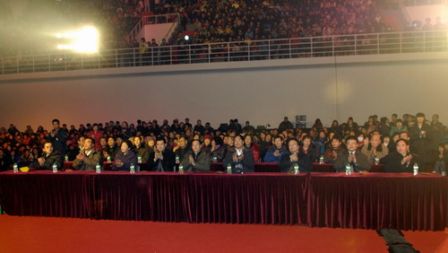 2009年12月29日晚,我院新落成的体育馆内喜气洋洋、一片欢腾,防灾科技学院2010年元旦文艺晚会在这里隆重上演。中国地震局党组成员、副局长、直属机关党委书记修济刚,直属机关党委常务副书记刘连柱,发展与财务司司长牛之俊,离退休干部办公室主任王霞,中国地震局办公室副主任王蕊,人事教育和科技司副司长赵明,震害防御司副司长杜玮,震灾应急救援司副司长陈虹,监察司副司长傅宏,人事教育司科技人才成果处处长杨心平等领导莅临现场观看演出。共同观看演出的还有学院领导班子全体成员、全体中层干部、离退休干部、部分老师,以及全院各系学生代表近2200人。