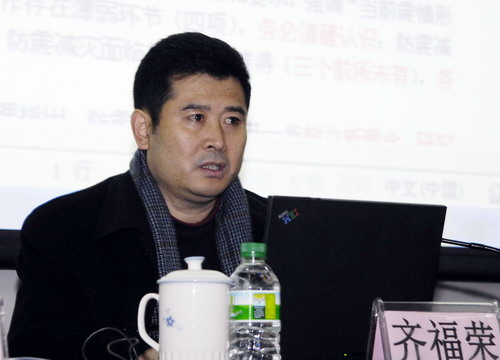 学院党委书记齐福荣向与会同志传达了两个会议的主要精神,内容分为三个部分: