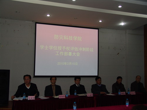 2010年3月10日下午,学院召开学士学位授予权评估冲刺阶段工作部署大会,对本科学士学位授予权评估第三阶段(冲刺阶段)工作进行专门部署。大会由薄景山院长主持,学院领导出席会议,中层干部、教研室主任、系(部)办公室主任(教学秘书)、评建秘书参加了会议。