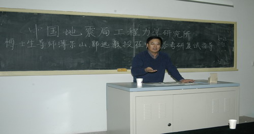 2010年3月26日,防灾工程系特邀中国地震局工程力学研究所博士生导师薄景山、郭迅教授为考研学生做复试指导。系领导邵景霞、李巨文出席了会议,勘查教研室主任王根龙博士、相关专业部分教师及全系2006级考研初试上线在校的30多名同学参加了会议。