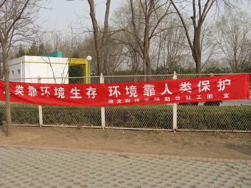 为提高大学生服务队感恩社会、回报社会的意识,2010年4月8日,防灾仪器系大学生服务支队80余名队员在燕郊公园举办了 “美丽燕郊和谐生态”环保公益活动。
