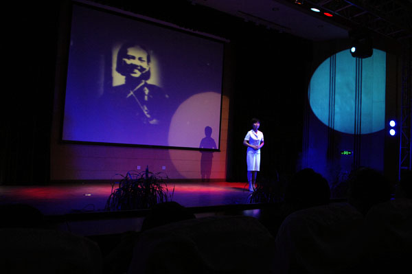 20余篇诗文书信遗作和新诗歌作品按照“启蒙”“真爱”“曙光”“放歌”4个篇章结构予以重新编排,层层展现革命先烈用生命铸就、感人至深的精神财富。我院老师高萍、杨静、吴萍、黄萍、徐占品、迟晓明、栾天光、赵正阳、刘延书,学生佟鑫、白露等以其富于感染力的朗诵艺术,将《红色箴言》的经典诗句送给了观众,激情澎湃的声音诠释了那感人至深的革命情怀、红色理想、执著追求和纯真情感,为广大师生奉上一场酣畅淋漓的艺术盛宴。《艰难的国运与雄健的国民·新纪元》《为祖国而歌》《卢沟晓月》《花》《给一弟的信》《致赵云霄》《铁窗摇篮曲》《黑牢诗篇》《别了,哥哥》《囚歌》《刑场上的婚礼》《可爱的中国》等展现了革命先烈追求真理、矢志奋斗的高尚情操、铮铮铁骨和光辉形象。而何其芳的《我们最伟大的日子》、郭小川的《望星空》、艾青的《我爱这土地》、舒婷的《祖国啊,我亲爱的祖国》等新诗歌,在委婉抒情或激越昂扬中表达着对党、对祖国、对新生活的热忱与挚爱,引起观众心灵上的强烈共鸣。