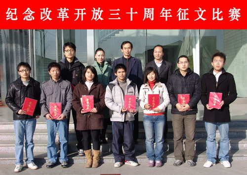 为庆祝改革开放三十周年,歌颂中国特色社会主义,推动学习实践活动深入开展,院党委宣传部、院团委、人文社科系于日前联合举办了庆祝改革开放30周年学生征文比赛。