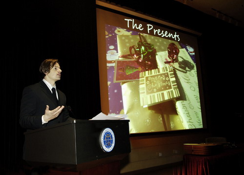 2008年12月23日晚,应院国际合作处的邀请,外教Neil Sainsbury在图书馆报告厅举办了英国文化讲座。外语系、图书馆的部分老师和广大英语爱好者聆听了讲座,并与外教作了长时间的互动交流。