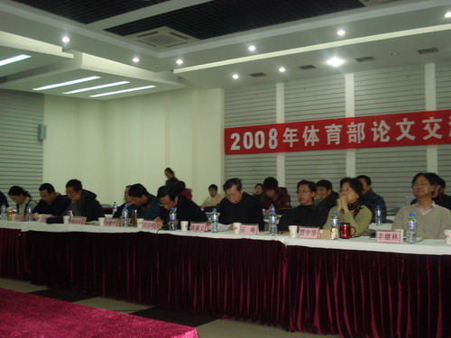 2008年12月30日,院体育部在图书馆多功能报告厅举办了2008年论文交流会,学院领导刘春平、迟宝明,专家赵永安、高盛义、石峰、丰继林、王建富、胡顺田、贾中华、冯海成、杨静等出席了本次交流会,9位教师在会上作了论文交流。