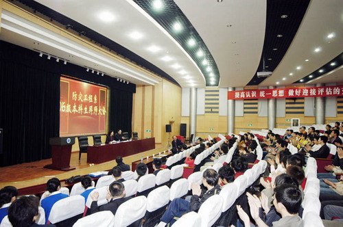 为深入贯彻落实学院首届本科生培养质量工作会议精神,按照 《关于防灾科技学院2006级本科生专业导师聘任和管理工作的通知》要求,并结合系里的实际情况,2009年3月18日晚,防灾工程系在图书馆报告厅召开了2006级本科生拜师大会。专业导师、学院院长薄景山教授等,系领导李巨文、邵景霞出席了大会,2006级全体本科生参加了大会。拜师大会由系副主任(主持工作)李巨文主持。
