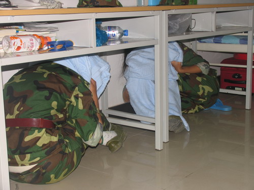 为使我院新生了解避震、疏散等应急避险知识,掌握应急避险的防护措施和方法,9月21日下午,在承训部队、学院教务处、保卫处、后勤服务中心和经济管理系90多名师生的协助下,学生工作处组织2008级全体新生成功地进行了应急疏散演练,学院党委副书记、副院长宿景贵亲临演练现场担任总指挥。