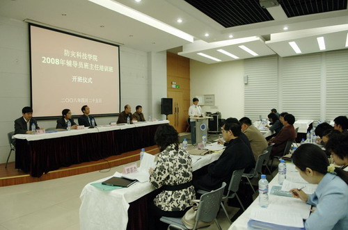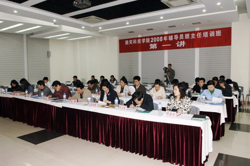 2008年4月25日下午,我院2008年辅导员班主任培训班开班仪式暨第一讲在图书馆多功能厅成功举行。学院党委副书记、副院长宿景贵,学院副院长谭金意率党委组织部、人事处、学生工作处负责同志和各系党总支书记出席了开班仪式;我院全体专兼职辅导员、班主任参加了培训。