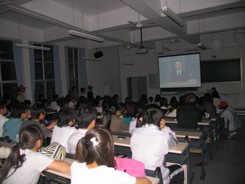 学院副院长谭金意与同学们一起观看了赈灾晚会,先后有1300人次收看了相关节目。