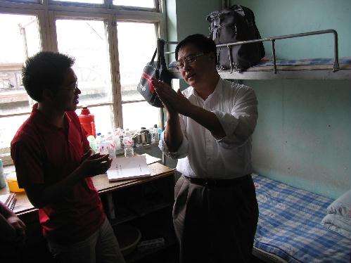 薄院长首先到实习基地的学生宿舍看望了参加此次实习的工程地震与工程勘察专业06611班的全体同学,了解同学们的学习和生活情况,叮嘱同学们注意实习安全。薄院长还与同学们亲切交谈,希望同学们要根据地质演化历史时间漫长、各种地质现象及形成过程复杂的特点,训练从现象追溯本质的能力、综合分析地质现象的能力,以地质思维观来观察分析地质现象,为后续专业学习打好基础。随后,薄院长问候了各位实习指导教师,并向实习教师详细询问了实习的具体教学内容以及实习基地的建设等问题,强调了地质课程对地震专业群发展的保障作用,指出野外地质实习是基础教学的重要组成部分,希望各位老师继续做好地质实习教学工作,建立功能完善、能满足本科专业教学的野外地质实习基地,注重对学生基本概念、基本理论和基本技能的“三基”训练,给学生开一些实实在在的有用课程,并在教学过程中注重地质实习资料的整理与收集工作,为拓展学院专业做准备。
