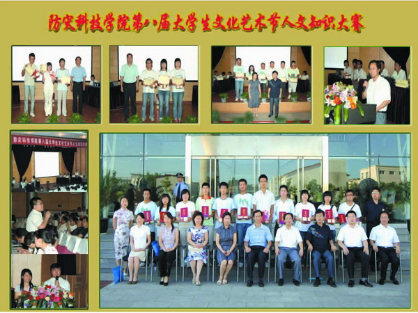 2007年7月11日下午,由院团委、学生会主办的第八届大学生文化艺术节人文知识竞赛决赛在图书馆报告厅成功举行。院党委副书记、副院长宿景贵亲临竞赛现场并为获奖选手颁奖,院党委宣传部、党委办公室、各系分管学生工作的领导,学生工作队伍全体教师及200多名同学观看了本次活动。