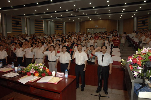 院长薄景山首先带领参加大会的教职工面对国旗进行了庄严的宣誓,表达了作为光荣的人民教师的誓言。这是学院为了加强教师文化建设,增强教师的使命感和自豪感,而举行的学院历史上第一次教师宣誓仪式。