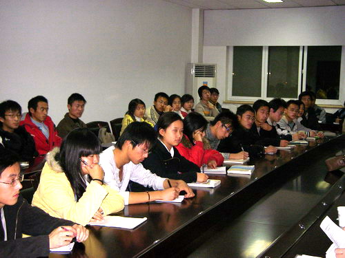 在2007级本科学生座谈会的讲话中,迟宝明副院长对同学们提出了几点希望:一要尽快适应大学学习的环境和方式,尽快完成从被动学习向主动学习的转变,提高自我管理和自主解决问题的能力;二要明确目标,认真反思,既要树立大学学习的目标又要注意实现目标的方法和途径,增强学习的动力;三要注意综合素质的提高和身心的全面发展,要在增长学识的同时,健全人格品质,提高道德水平,开阔专业视野,增强社会适应力和个人的综合竞争力;四、学生信息员要及时收集和反馈广大同学在教学方面的意见和建议,并通过各种方式反应给相关部门,为加强学院的教学信息反馈,完善教学质量监控体系,推动教风、学风建设和教学改革的不断深入作出贡献。
