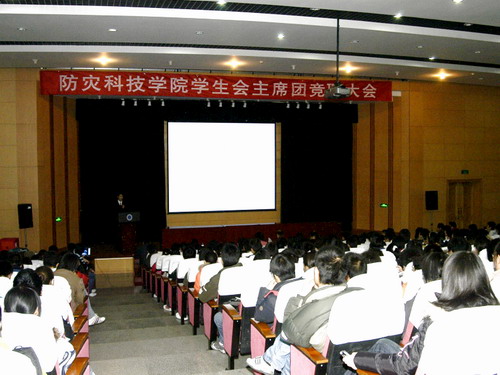 12月7日晚,我院新一届学生会主席团竞聘大会在图书馆报告厅隆重举行,学院副院长谭金意出席大会并讲了话。