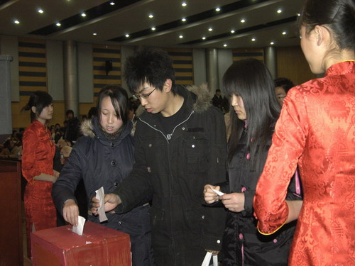 学生代表投出神圣的一票