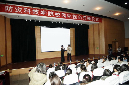 整个开播仪式构思巧妙,编排新颖,除了播放校园电视台的首期新闻节目《防灾新闻》、《防灾教育视点》之外,还不时穿插大学生艺术团表演的文艺节目,在仪式进行中,主持人还通过网络视频信号现场连线到位于6号楼12层的校园电视台演播室,由现场主持人向广大观众介绍校园电视台基本情况。
