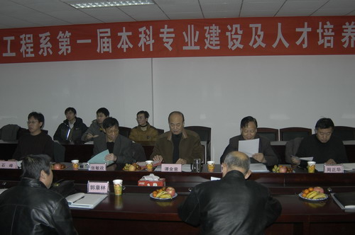 谭金意副院长首先介绍了防灾科技学院的基本情况以及防灾工程系的发展背景,希望与会专家能在学院“二次创业分三步走”的关键时期,对我院的学科专业建设、实验室建设给予长期的关注与支持,并为到会的专家颁发了“防灾科技学院兼职教授”聘书。然后,与会专家围绕土木工程、勘查技术与工程两个本科专业的建设、人才培养方案以及“十一五”实验室建设规划等内容,进行了热烈的讨论。专家一致认为:一、人才培养目标要定位为培养适应社会需要的应用型人才。二、突出防灾科技学院特色,依托地震行业优势,走特色专业道路。三、加强专业基础课学习,注重培养学生的计算机应用能力和动手能力。