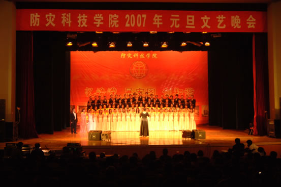2006年12月28日晚,学院在燕郊影剧院成功举办了2007年元旦文艺晚会。中国地震局党组成员、副局长修济刚,直属机关党委常务副书记刘连柱,人事教育和科技发展司副司长李明,直属机关党委组织部部长卢桢,人事教育和科技司科技人才成果处处长杨心平,直属机关团委书记王继斌应邀在学院党委书记齐福荣,院长薄景山,副书记、副院长宿景贵,纪委书记、副院长钟南才的陪同下与学院师生一起观看了整场晚会。