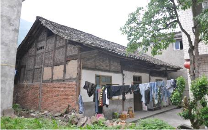 穿斗木屋架房屋是我国西部地区很普遍的传统的木结构民居形式。该类结构形式存在已有千年以上的历史,建筑材料除了木构架为主要支撑外,围护墙体常采用砖墙、木板墙、竹篾和石膏板墙等。
