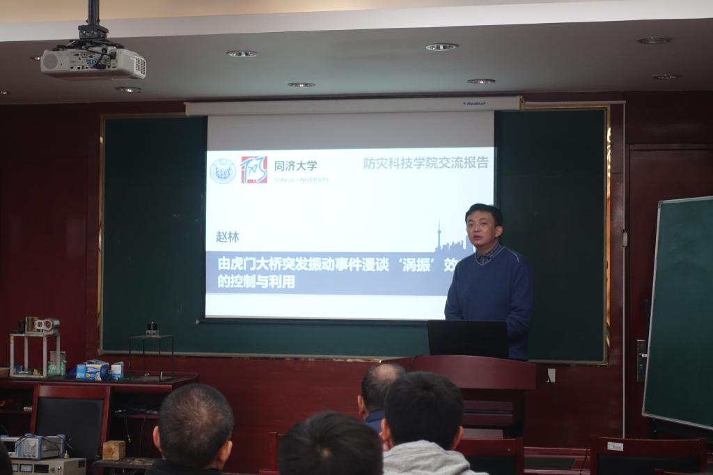 12月22日上午,应中国地震局建筑物破坏机理与防御重点实验室和土木工程学院的邀请,教育部新世纪优秀人才、国家自然科学基金委员会优秀青年科学基金项目获得者、中国科协全国首席科学传播专家、交通运输部中青年创新领军人才、同济大学教授赵林到防灾科技学院开展学术交流,并作题为“由虎门大桥突发振动事件漫谈涡振效应的控制与利用”的学术报告。报告会由土木工程学院院长孙治国主持,学院部分教师和研究生聆听了报告。