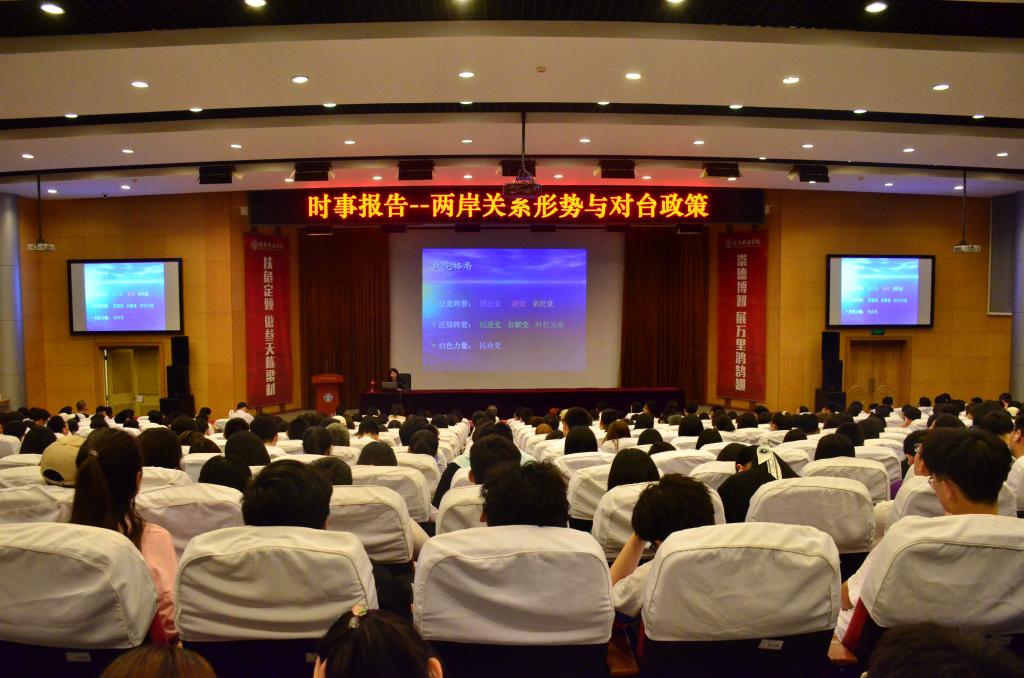 根据教育部办公厅关于印发《高校“形势与政策”课教学要点(2021年上辑)》的通知(教社科厅函〔2021〕10号)和本学期“形势与政策”课的教学计划、“师生同上一堂形势与政策思政大课”的相关安排,5月28日,马克思主义学院邀请中国现代国际关系研究院涉台研究中心主任研究员、国务院台湾事务办公室海峡两岸关系研究中心特约研究员、厦门大学台湾研究院博士生导师谢郁来校作题为“两岸关系形势与对台政策”专场形势与政策报告会。报告会在图书馆报告厅举行,马克思主义学院全体教师与“形势与政策”课的教学班级学生代表参加,其他教学班的同学采用线上观看直播的方式参加。