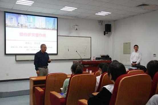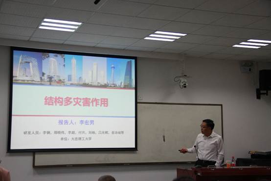 李宏男教授做了题目为“结构多灾害作用”的学术报告。从结构多灾害作用的研究背景及重要意义、多种灾害作用几个问题、风和雨及地震和风联合作用灾害模型、地震-风耦合作用下超高层结构易损性分析以及结构多灾害作用的研究结论及前景展望等方面介绍了最新研究资料和成果。报告结束后,在场师生同李教授就结构多灾害作用的研究进行了深入的交流。