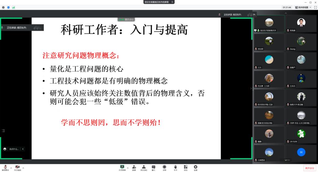 12月29日上午,河北工业大学王东升教授应邀为土木工程学院师生作题为“学科发展和科研工作应注意问题”的报告,并就土木工程学科国家自然科学基金申报进行指导。本次报告会采用线上形式召开,土木工程学院院长孙治国教授主持了报告会,校内外共八十余名师生聆听了报告。